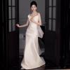 Vestido de Novia Ligero Estilo Europeo y Americano 2026 Nuevo Vestido de Novia de Satén de Verano para Fotografía de Viaje, Vestido Ligero sin Hombros, Vestido de Noche Adelgazante