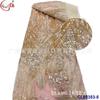 Malla bordada con cuentas de ancho completo, base bordada con lentejuelas, patrón de planta, encaje de malla teñida, vestido con cola, tela de encaje para boda