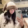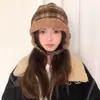 Gorro de Invierno para Mujer para Exterior de Forro Polar a Prueba de Viento con Protección de Cuello y Orejas Sombrero de Cubo Versión Coreana Moda Gorro Pequeño de Felpa