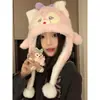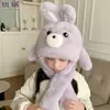 Lindo gorro de oso para mujer, otoño e invierno, coreano, para ciclismo, a prueba de viento, cálido, con orejeras, máscara, bufanda, gorro de felpa integrado Lei Feng