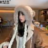 Gorro Lindo de Otoño e Invierno, Protección Cálida para las Orejas, Bufanda para el Cuello, Gorro de Una Pieza, Set de Tres Piezas, Gorro de Conejo Popular en Douyin, Protección para Mujeres de Otoño e Invierno