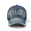 Gorra de Béisbol de Mezclilla con Letras HAWAII Incrustadas con Diamantes Transfronteriza Moda Femenina Protector Solar para Exteriores Gorra de Moda
