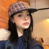 Gorra de Béisbol Retro a Cuadros para Mujer Primavera y Verano Exterior Transpirable Gorra de Copa Suave Combinable Rostro Pequeño Sombrero de Copa Suave Moderno