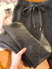 Pantalones Casuales de Cachemira para Mujer Invierno Nuevo Estilo Coreano Cálidos Sueltos Adelgazantes Empalme Bicolor de Cachemira Pantalones de Pierna Ancha