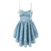 Vestido de tirantes azul con estampado para mujer, reduce la edad, estilo francés de verano 2024, con cordones en la cintura y falda shaggy