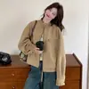 Chaqueta de Felpa Gamuzada para Mujer Primavera Otoño Petite Nueva Casual Versátil Color Caqui Chaqueta de Motociclista Chaqueta Corta