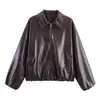 Chaqueta Corta de Cuero para Mujer 2025 Otoño Nuevo Estilo Petite Cuello Alto Fresca Vintage Chaqueta de Piel Pu
