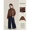 Amybaby Top para Niñas Otoño 2024 Nuevo Coreano Holgado Versátil Solapa Cremallera Chaqueta Chaqueta de Cuero