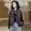 Chaqueta de Cuero de Gama Alta para Mujer Corta Primavera y Otoño 2025 Nuevo Estilo Coreano Estilo Extranjero Reductora de Edad Ajustada Chaqueta de Cuero para Motocicleta
