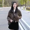 Grulla Blanca de Almohada Chaqueta de Cuero Marrón para Mujer Corta Estilo Nuevo Estilo Popular de Este Año para Personas Bajas Maillard