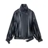 Exclusivo Transfronterizo Otoño/Invierno 2025 Nuevo Artículo Estilo Urbano Cuello Alto Moda Temperamento Chaqueta Corta de Polipiel con Cinturón Borla para Mujer