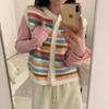 Chaleco Cardigan de Punto Rayas Arcoíris para Mujer Otoño Apilado Cintura Pequeña Chaleco 2025 Ropa Nueva de Primavera