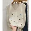 Tejido de punto de chaleco de alta gama para mujer, chaleco de principios de otoño, top holgado y elegante para superponer, chaleco bordado estilo coreano