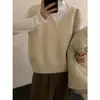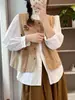 Nuevo Chal Tejido de Punto Holgado con Cuello en V sin Mangas y Aberturas Estilo Coreano Otoño 2026 Suéter de Estudiante para Mujer
