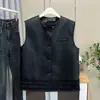 Toma Real en stock Nuevo Chaleco de Algodón Sarga Vintage para Mujer Holgado Corto sin Mangas Elegante Chaleco Superior