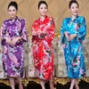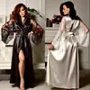 Suministro Directo de Fábrica Bata de Noche de Seda Imitación Pavo Real Bata Larga Estampada Verano Sexy Holgada Talla Grande Atada con Cordones Kimono Japonés