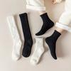 Calcetines de terciopelo coral de color liso sin pelo para mujer, medias de terciopelo acolchadas y cálidas, calcetines de invierno en blanco y negro.