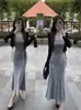 Vestido Camisola Sexy con Abertura Conjunto de Dos Piezas Cárdigan Manga Larga Falda Larga Conjunto de Moda Chica Caliente Gama Alta Principios de Primavera 2026