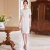 Vestido Francés Falso de Dos Piezas Cuello Redondo Ajustado Verano 2024 Nuevo Elegante de Oficina de Gama Alta Blanco