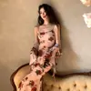 Vestido de Tirantes Tejido con Estampado de Lazo para Mujer Vestido de Verano Traje Completo Falda Petite Adelgazante Falda Larga de Cola de Pez