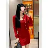 Suéter de Punto de Terciopelo Imitación de Visón Coreano Conjunto Estilo Chica Rica Vestido Rojo Elegante para Brindar en Navidad Conjunto de Dos Piezas Adelgazante