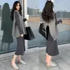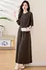 Vestido largo, alta gama, rejuvenecedor, de manga larga, otoño e invierno, falda de media pierna, hasta el tobillo, aspecto casual, y conjunto de dos piezas, suéter, tejido de punto