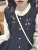Vestido de Pana Bordado Estilo Francés Primer Amor Unmun para Mujer, Conjunto de Dos Piezas Otoñal Petite, Temperamento Vintage de Hada