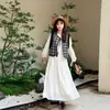 A0123 Conjunto de Vestido Chaleco Xuan Chen para Mujer Primavera Talla Grande Holgado Nuevo Estilo Chino Bordado Chaleco Vestido de Color Sólido