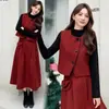 Suéter Cardigan Chaqueta Chaleco Vestido Traje de Punto Rojo Otoño 2025 Nuevo Traje de Boda Falda