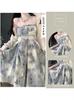Sanya Tailandia Yunnan Dopamina Atuendo de Viaje Estilo Vacaciones en la Costa Conjunto de Tirantes Florales Vestido Estilo Pintura al Óleo