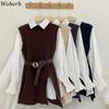 Stock Listo/Vestido Camisero de Cumpleaños de Cacahuate + Chaleco de Lana, Holgado, Cómodo y Sencillo Traje de Atmósfera Invernal