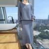 Suéter de cuello redondo de visón para mujer, traje de falda de manga larga, suéter de color sólido, conjunto elegante de dos piezas de lana, novedad de otoño e invierno
