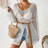 2026 Nuevo Estilo Transfronterizo Amazon Cubre Cuello de Playa con Abertura Lateral Hueca Personalidad Manga Larga Vestido de Playa para Mujer