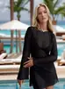 Vestido de playa de verano 2024 para mujer, estilo europeo y americano, sexy, de punto, de color liso, tipo bikini, blusa, protector solar