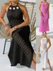 Yunsheng Transfronterizo Europeo y Americano Malla Tejida a Mano Calada Cubrebikini de Playa Sexy con Cuello Halter Espalda Descubierta Falda de Playa