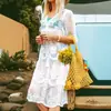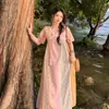 En stock real Amarillo Nuevo vestido chino para mujer Verano Suelto Falda larga