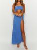 Vestido de Playa para Vacaciones de Verano Transfronterizas 2025 Sexy sin Mangas que Muestra el Ombligo Top Tubo de Punto Vestido Falda Larga Blusa para Mujer