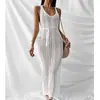 Falda de playa con tirantes de estilo europeo y americano para mujer, traje de baño de punto sin mangas de color puro con cortes, falda larga de playa para vacaciones.