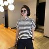 Verano 2023 nuevo estilo universitario de celebridad en línea solapa ola a rayas cintura alta manga corta moda femenina top adelgazante