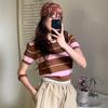 Verano Nueva Moda Estilo Occidental Top 2025 Ropa de Mujer Mostrador Rayado Color de Contraste Suéter de Punto Manga Corta