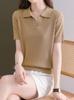 Camiseta de manga corta con cuello polo para mujer, verano 2024, nueva camiseta de verano para madres jóvenes, suéter de seda helada con solapa.
