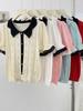 2025 Dulce Verano Nuevo Jersey de Punto de Manga Corta con Cuello Marino Estilo Preppy Reductor de Edad Top de Mujer Tendencia