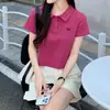 Camiseta de manga corta de diseño nicho para mujer, de algodón, corta, de verano, bordada, con ombligo al descubierto, cuello polo, nueva camiseta 2024