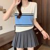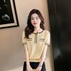 2025 Estilo Coreano Moda Cuello Color Block Diseño a Rayas Nicho Malla Tejida Top de Manga Corta para Ropa Exterior