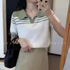 Ins Coreano Dongdaemun Verano 2026 Nuevo Estilo Coreano Camisa de Punto de Manga Corta a Rayas de Contraste con Cuello Solapa Botones Camiseta para Mujer