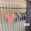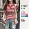 Ropa de Mujer que Muestra el Ombligo Verano 2025 Nuevo Diseño Corta de Color Contrastante Estilo Hong Kong Cuello Polo Ajustada Manga Corta Camiseta Venta al por Mayor