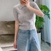 Suéter de lana peinada con cuello alto para mujer, manga corta, textura suave, base, estilo chino nuevo, primavera/verano 2024
