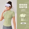 Chaqueta Deportiva de Verano de Manga Corta para Mujer Nueva Ajustada Adelgazante Cárdigan con Cremallera Cuello Camiseta Casual Ropa para Correr Fitness