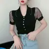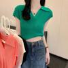 Elegante Dulce y Picante Verano Moda Nicho Francesa Camisa Tejida con Cuello Polo Camiseta de Manga Corta Top Corto Ajustado para Mujer