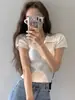 Camiseta blanca de manga corta con cuello polo para mujer, estilo francés de verano, diseño elegante de nicho, top corto ajustado de punto